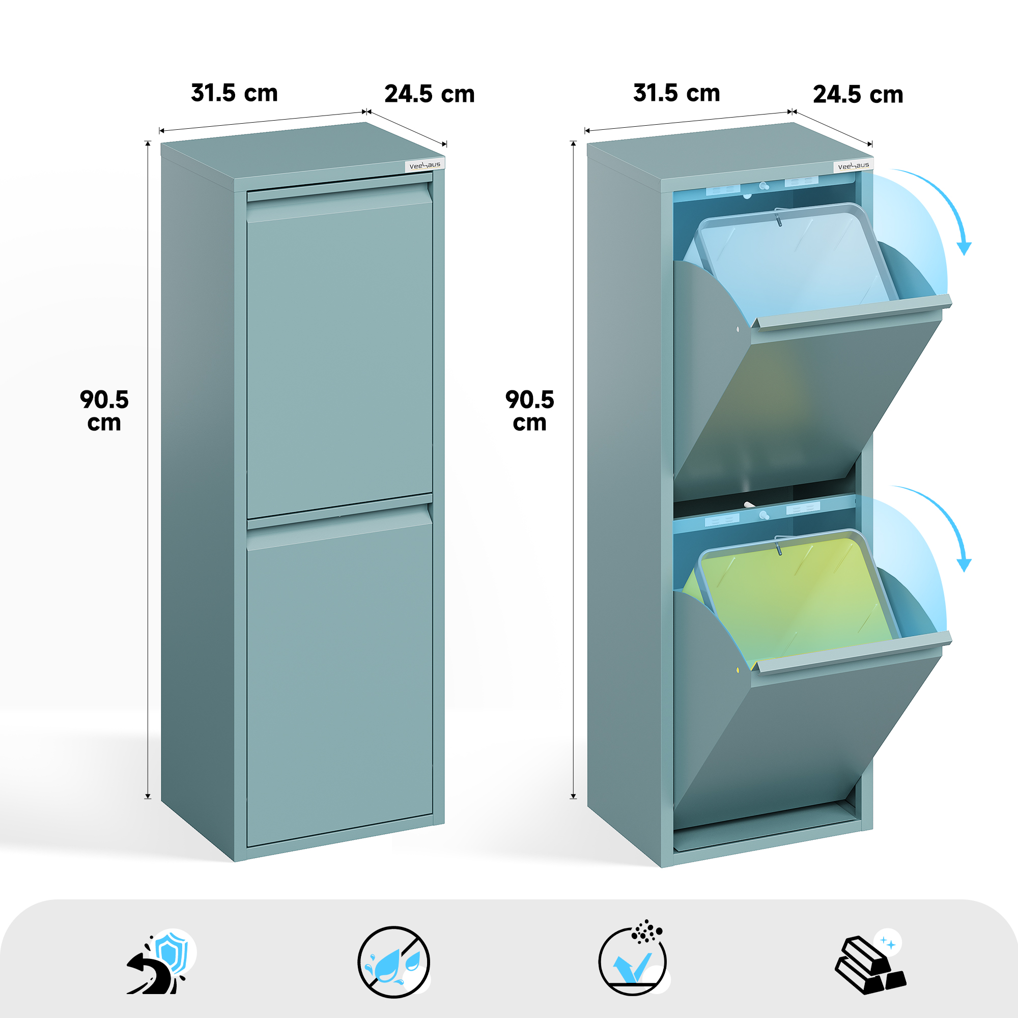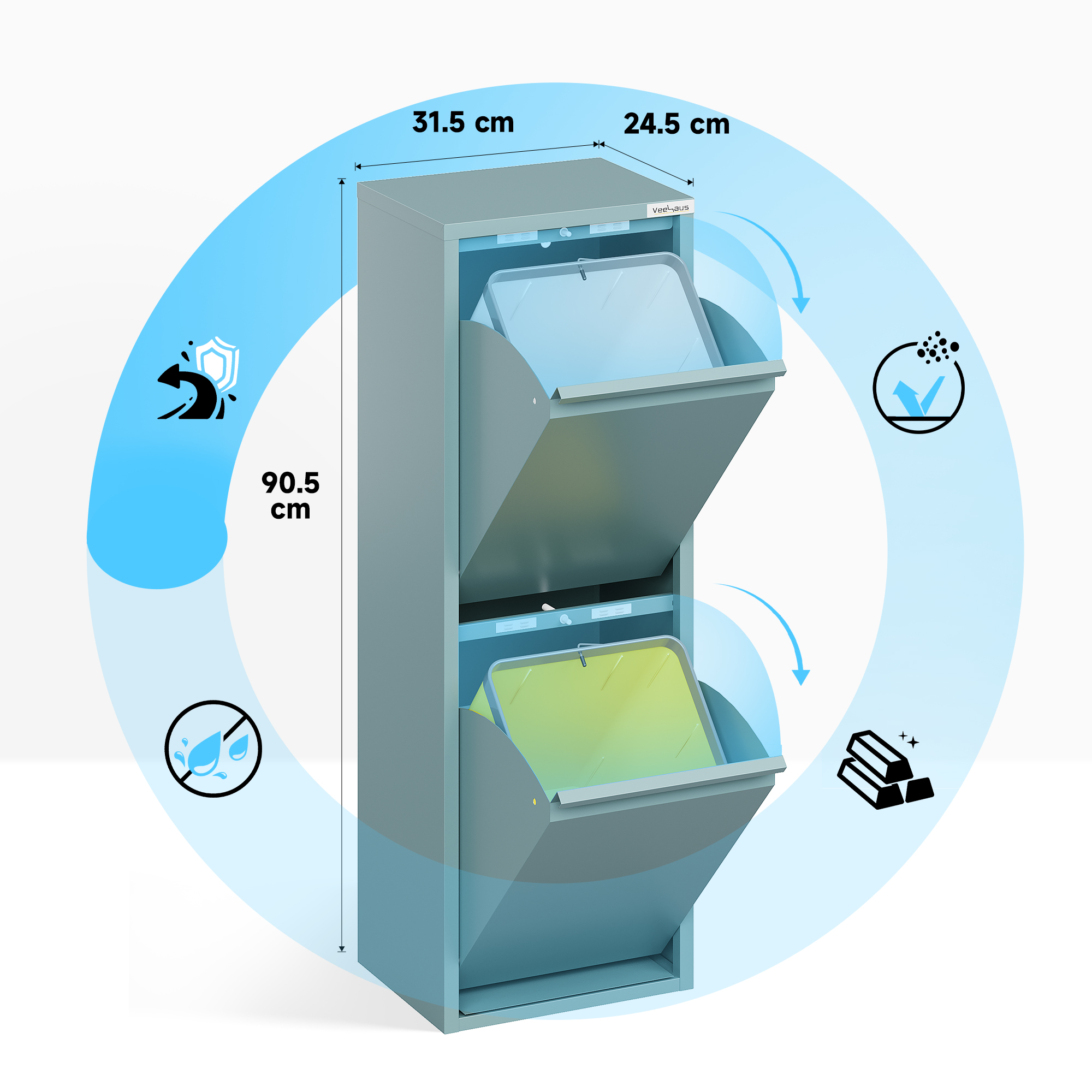 • Veelzijdig: de veelzijdige multifunctionele kast Allen van metaal is een ideale afvalscheider. Maar niet alleen als afvalscheidingssysteem is hij de perfecte aanvulling voor elk huishouden, maar ook als opbergsysteem slaat hij een goed figuur. Dankzij de hoogwaardige afwerking en look is hij geschikt voor bijna alle ruimtes.