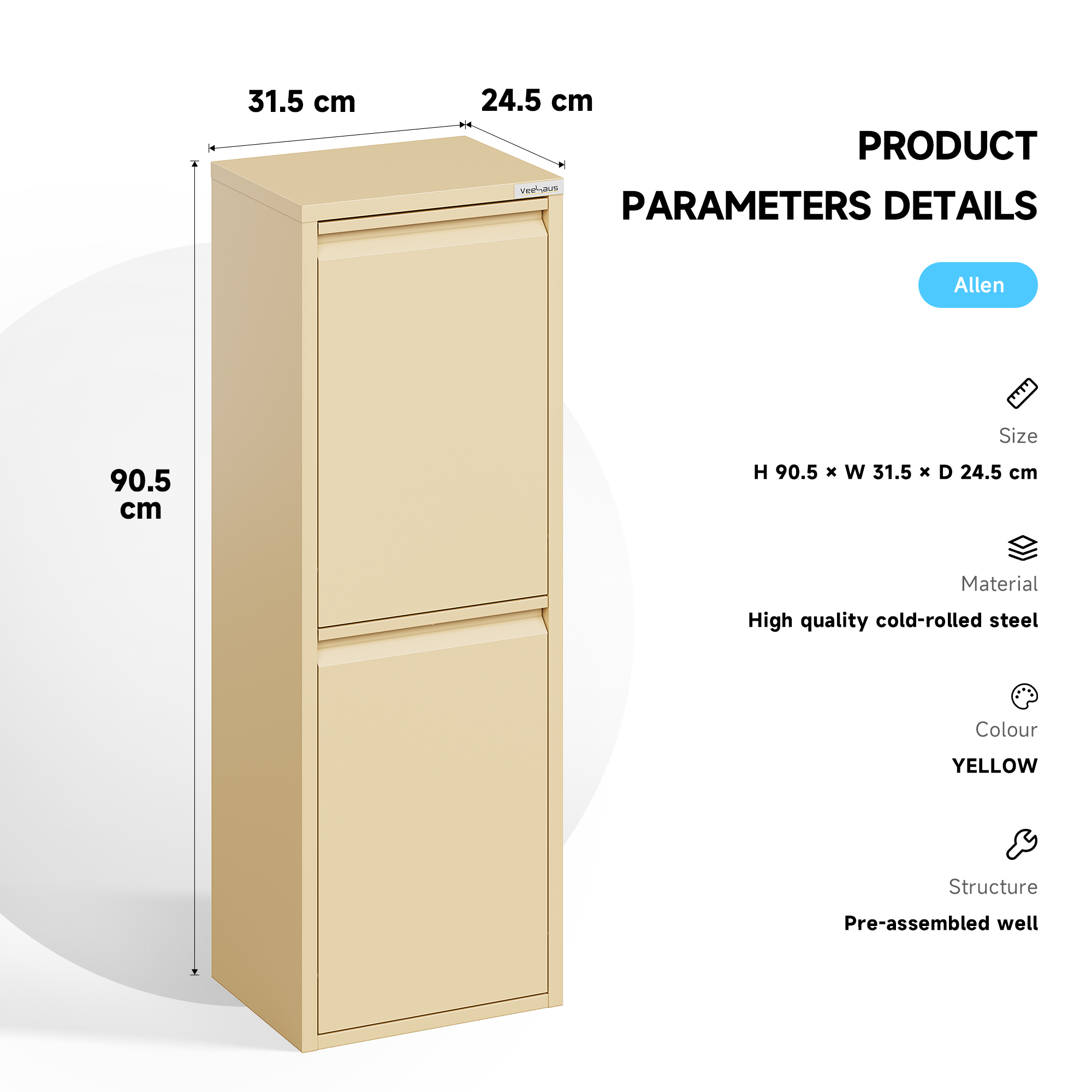 • Dimensies : Breedte 31.5 Diepte 24.5 Hoogte 90.5
