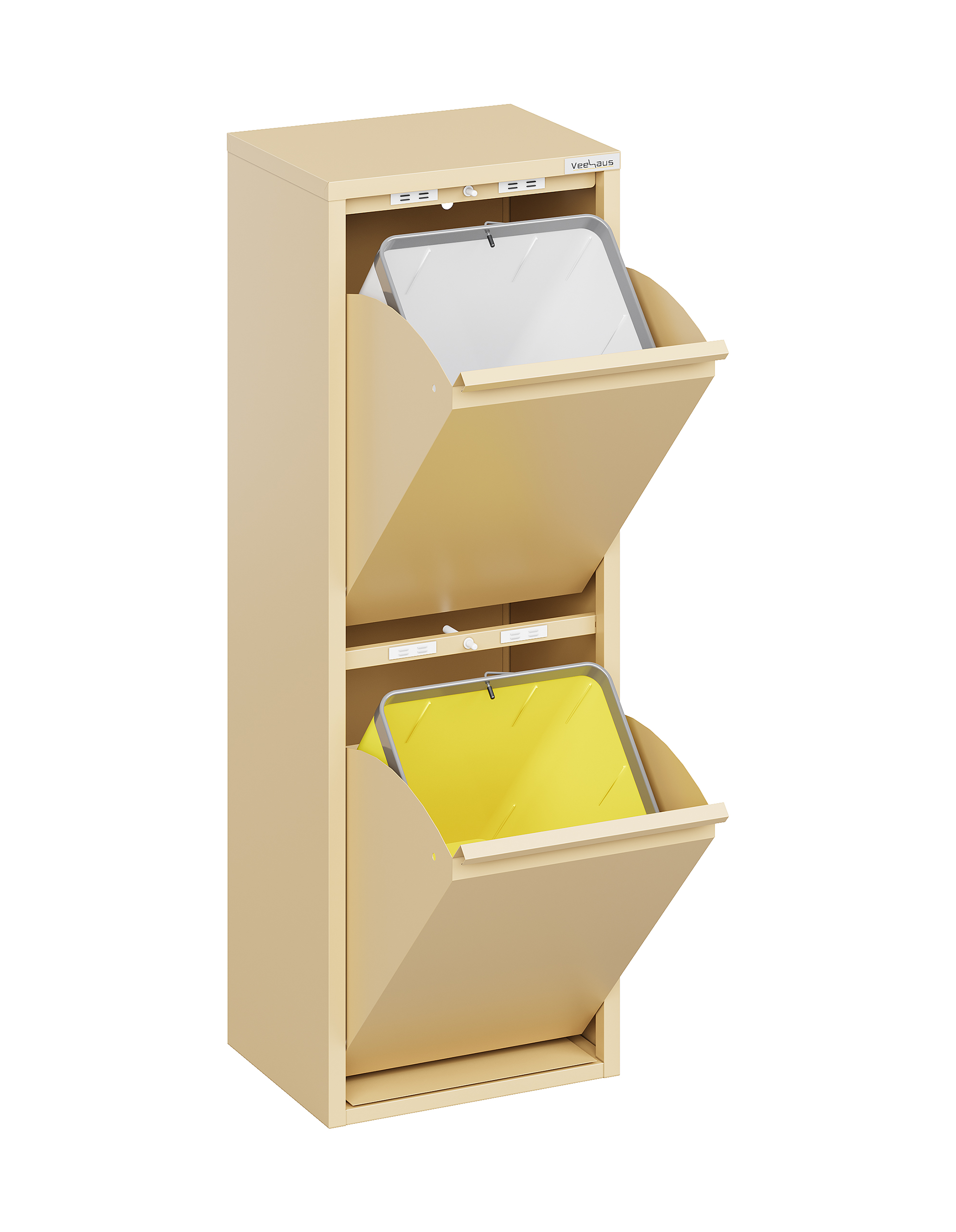 Veehaus® Allen – Prullenbak 2 vakken – Afvalemmer 30 Liter (2x 15L) – Hygienisch Recyclen – Metaal – Ivory