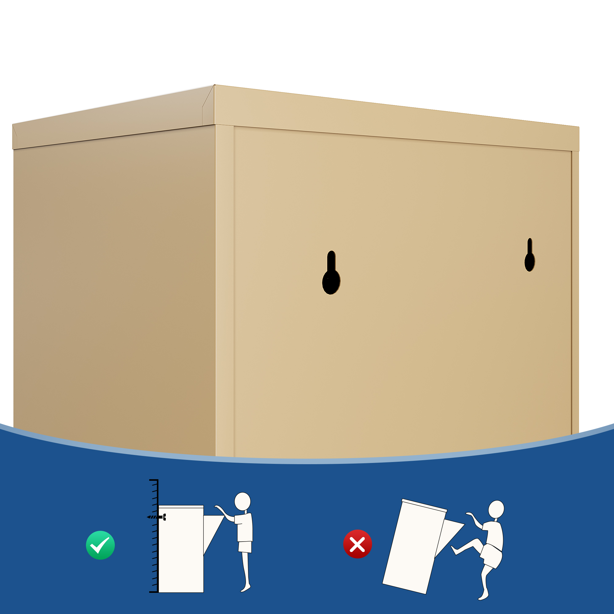 • Wandmontage: Allen kan praktisch aan de muur worden gemonteerd, daardoor is hij ondanks het grote volume ook ideaal voor kleine en smalle ruimtes. De voor wandmontage benodigde pluggen en schroeven zijn bij de levering inbegrepen.