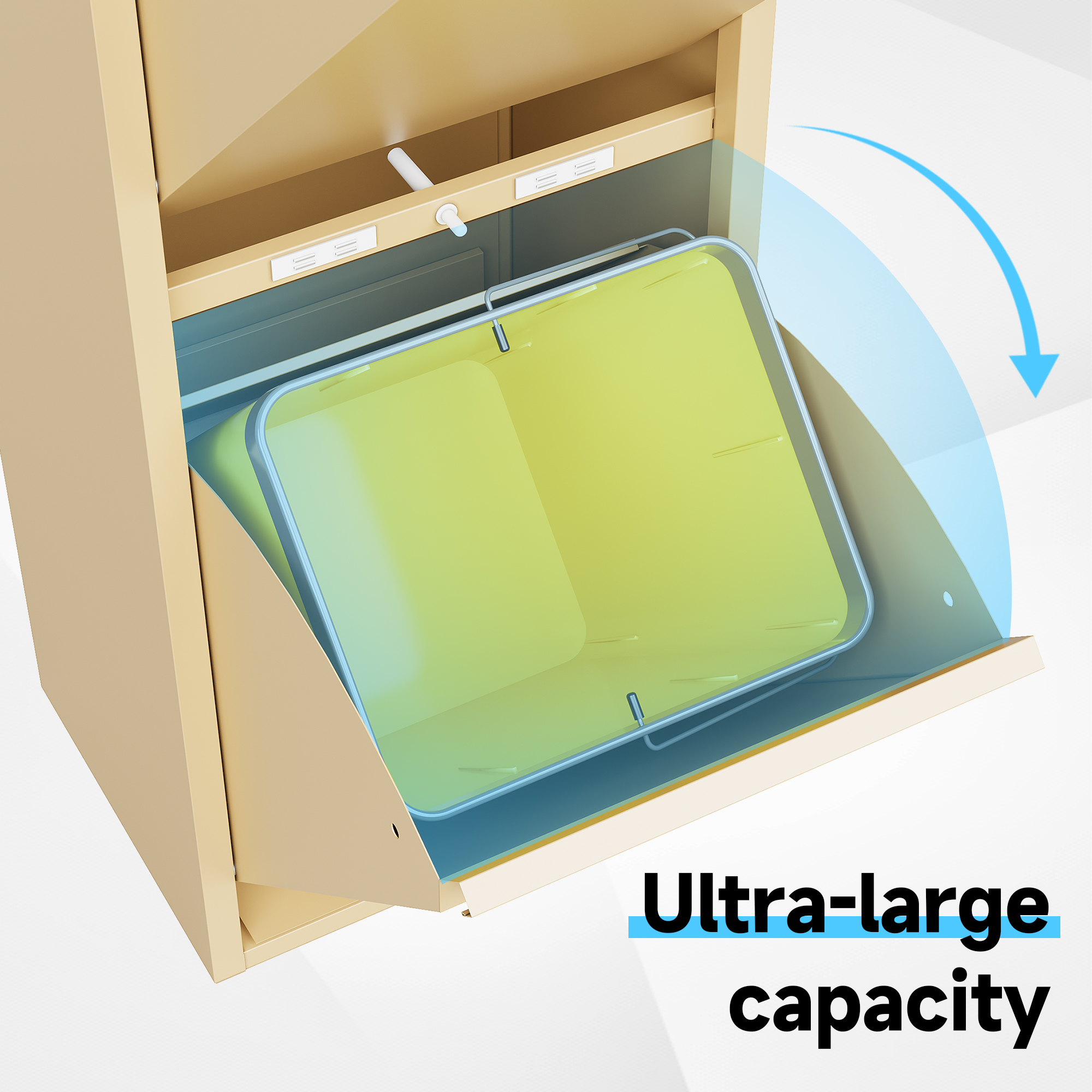 • Binnenemmer: bij de levering inbegrepen zijn, afhankelijk van de maatvarianten, 2-4 robuuste emmers van kunststof. De binnenemmers beschikken over een verchroomde draagbeugel, die een eenvoudige en hygiënische bediening garandeert.
