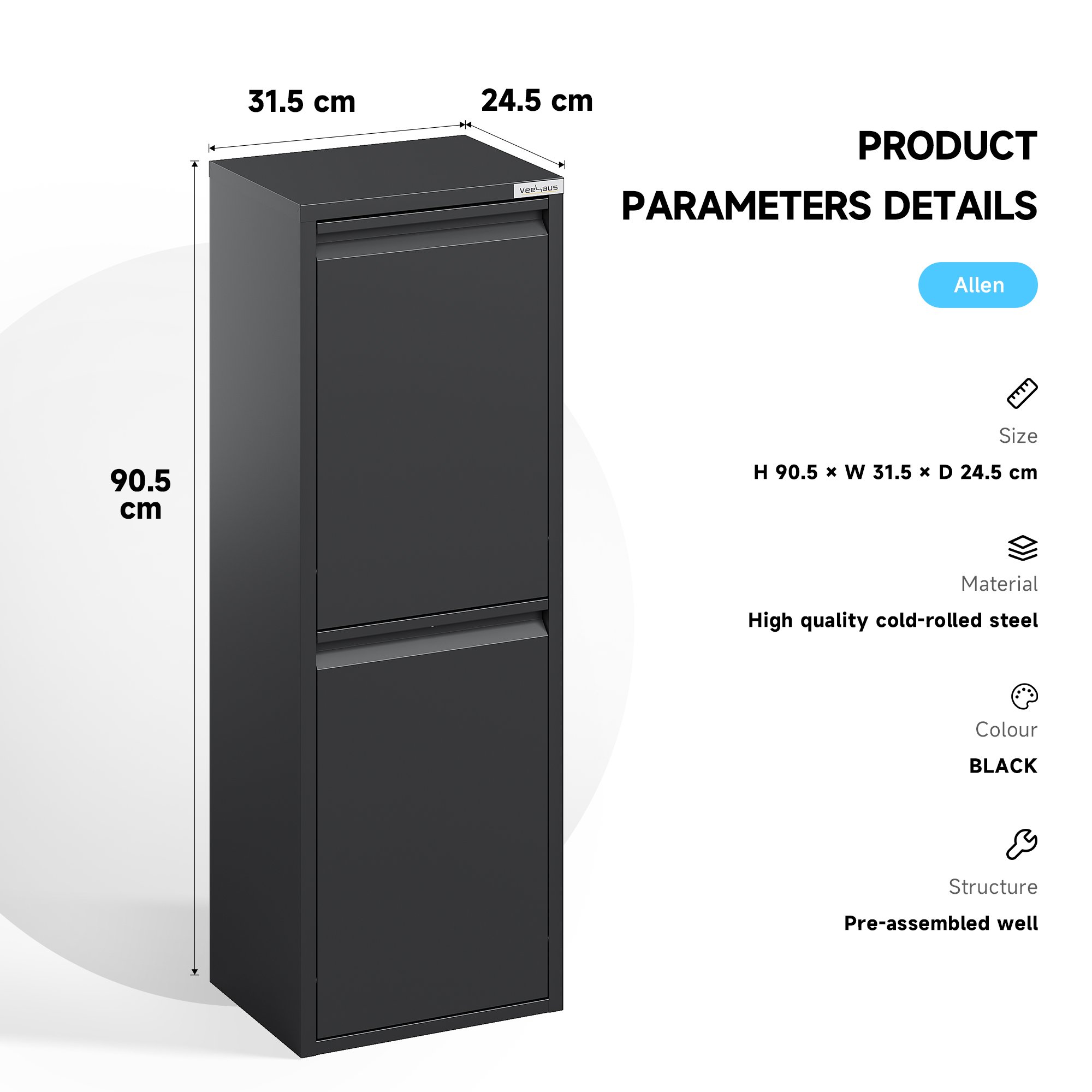 • Dimensies : Breedte 31.5 Diepte 24.5 Hoogte 90.5