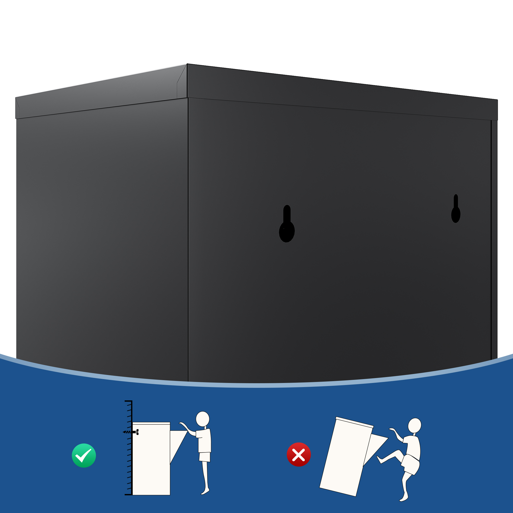 • Wandmontage: Allen kan praktisch aan de muur worden gemonteerd, daardoor is hij ondanks het grote volume ook ideaal voor kleine en smalle ruimtes. De voor wandmontage benodigde pluggen en schroeven zijn bij de levering inbegrepen.