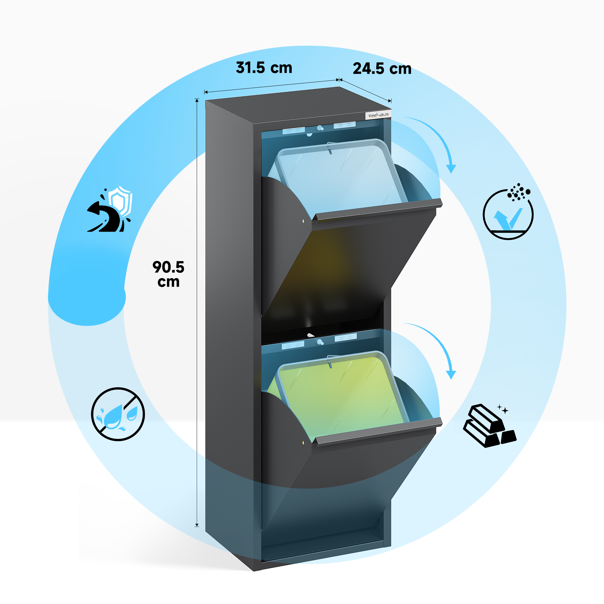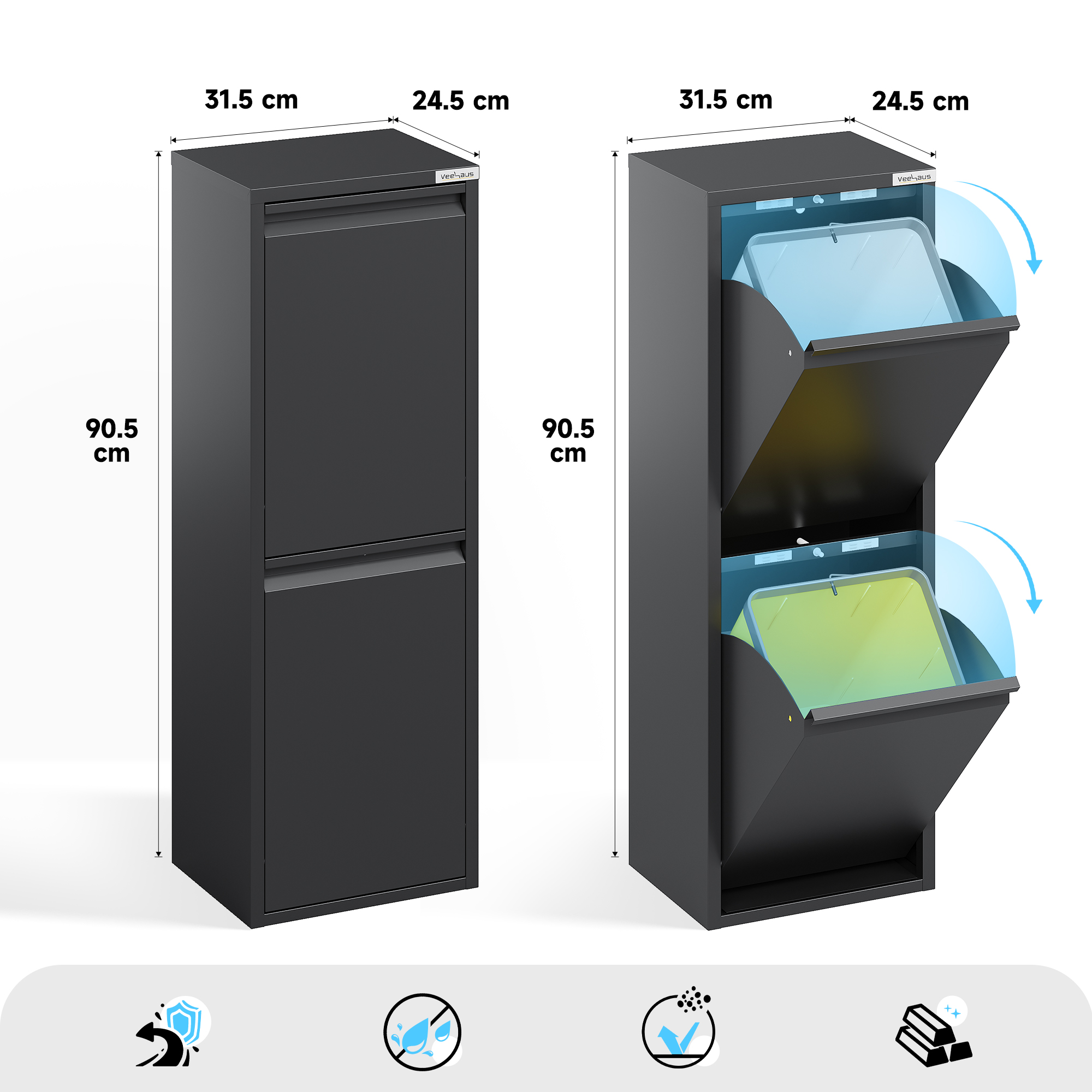 • Veelzijdig: de veelzijdige multifunctionele kast Refina van metaal is een ideale afvalscheider. Maar niet alleen als afvalscheidingssysteem is hij de perfecte aanvulling voor elk huishouden, maar ook als opbergsysteem slaat hij een goed figuur. Dankzij de hoogwaardige afwerking en look is hij geschikt voor bijna alle ruimtes.