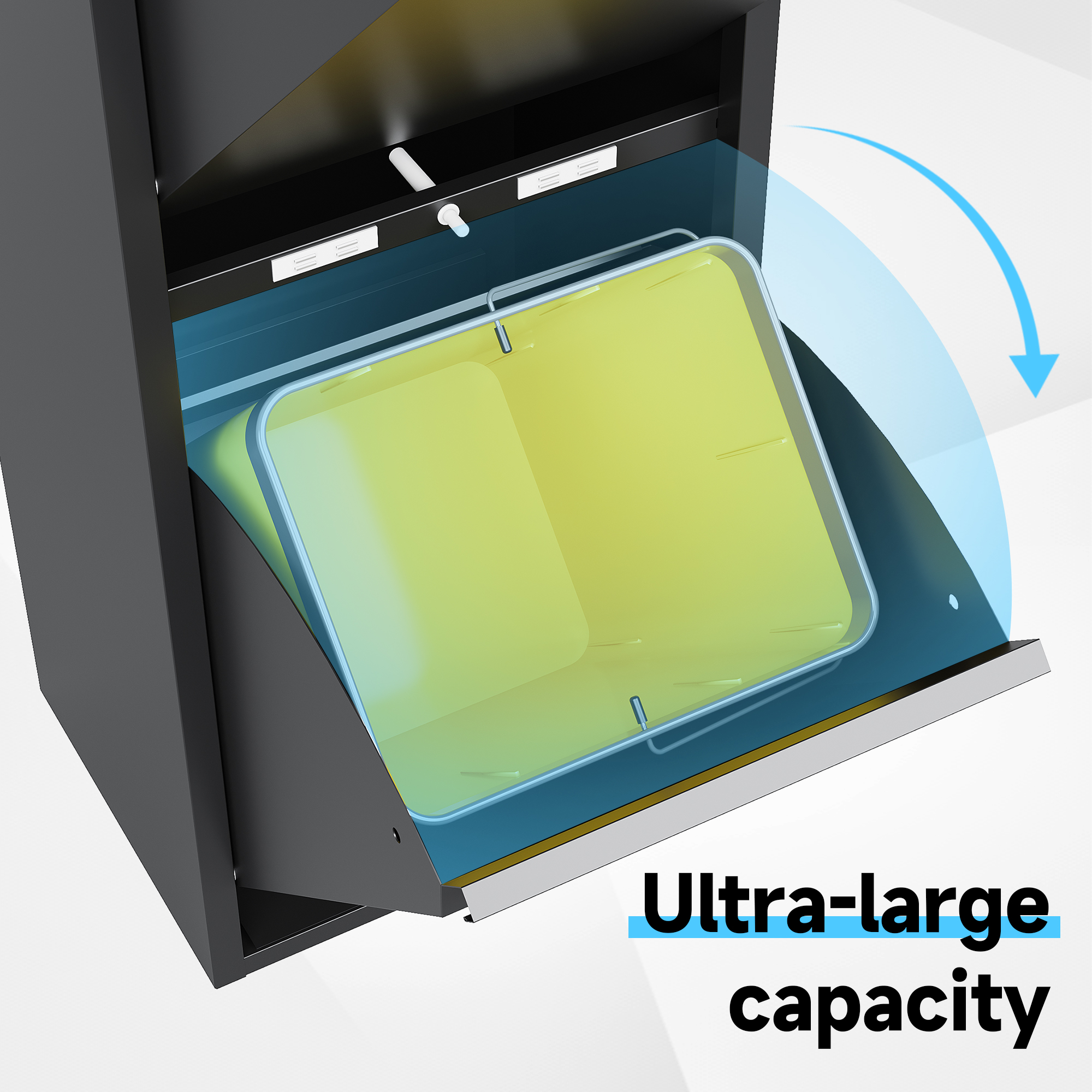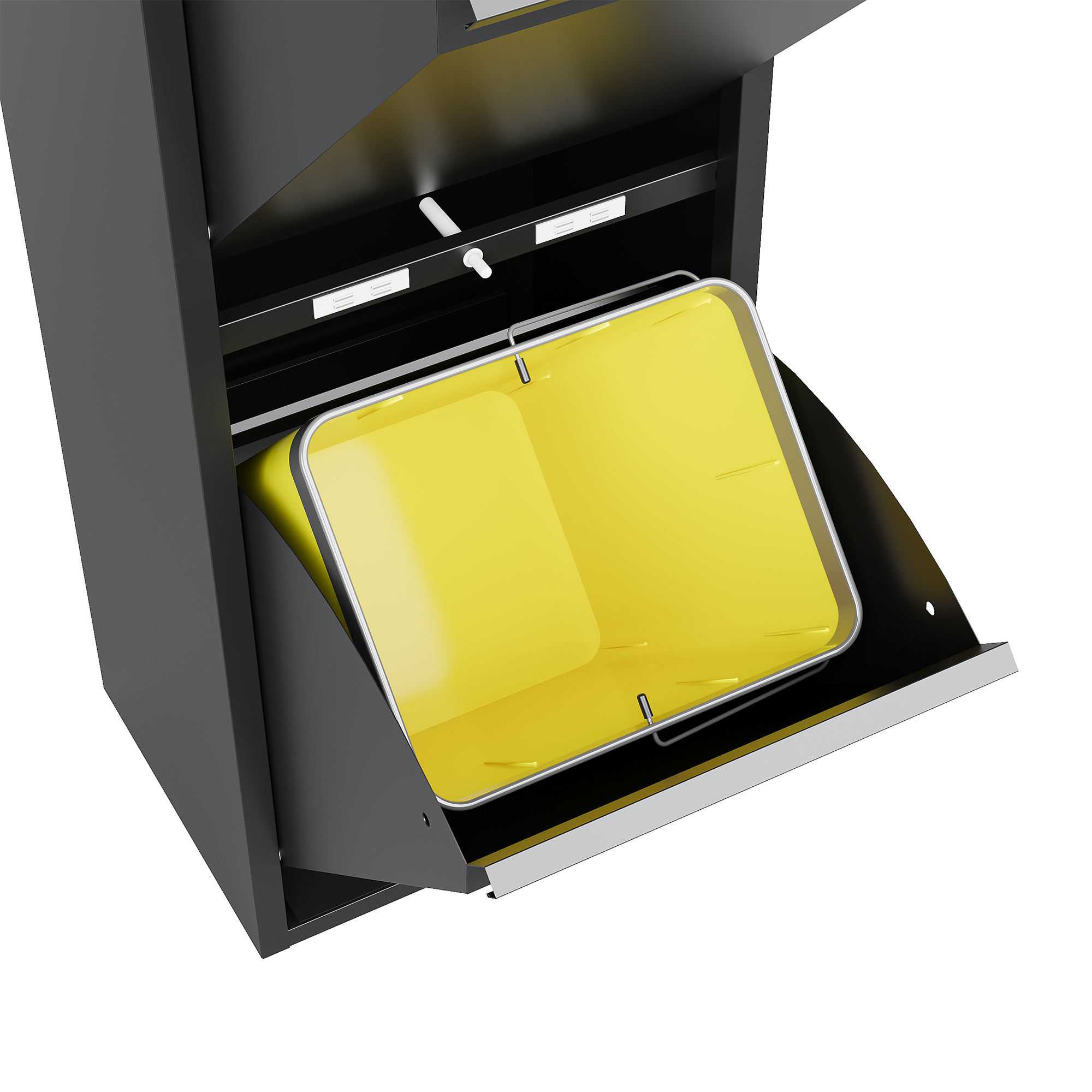 • Binnenemmer: bij de levering inbegrepen zijn, afhankelijk van de maatvarianten, 2-4 robuuste emmers van kunststof. De binnenemmers beschikken over een verchroomde draagbeugel, die een eenvoudige en hygiënische bediening garandeert.