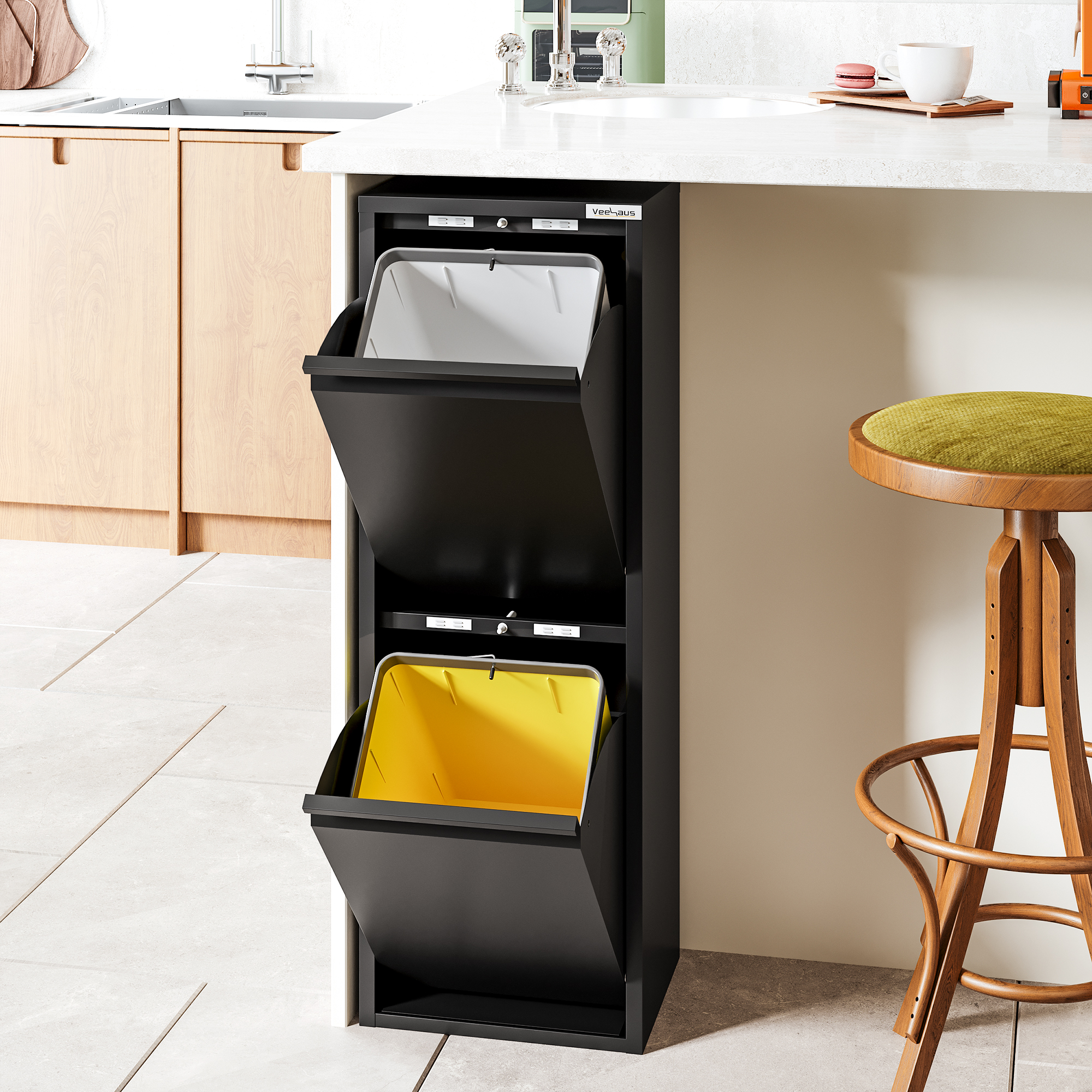 • Veelzijdig: de veelzijdige multifunctionele kast Allen van metaal is een ideale afvalscheider. Maar niet alleen als afvalscheidingssysteem is hij de perfecte aanvulling voor elk huishouden, maar ook als opbergsysteem slaat hij een goed figuur. Dankzij de hoogwaardige afwerking en look is hij geschikt voor bijna alle ruimtes.