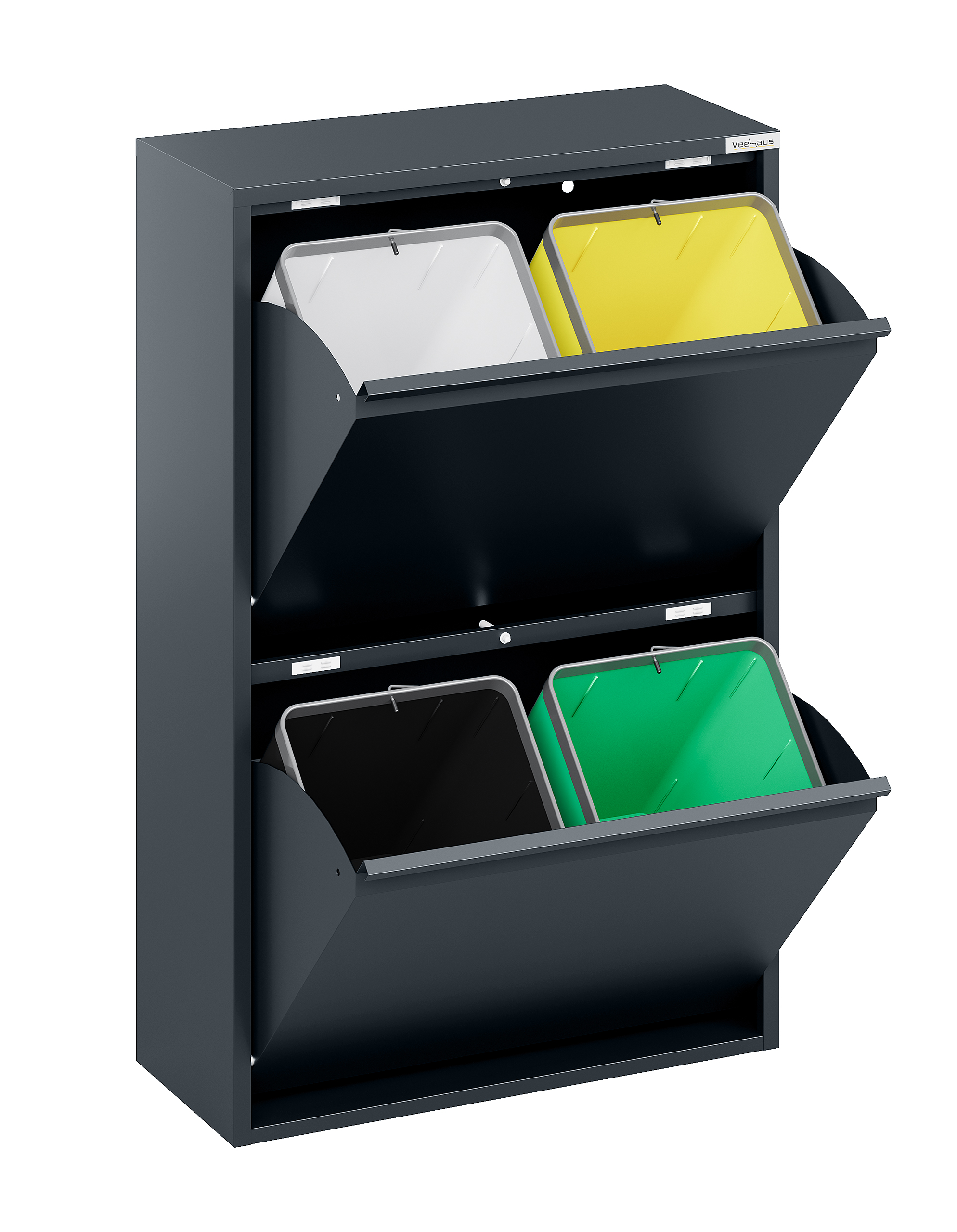 Veehaus® Clark – Prullenbak 4 vakken – Afvalemmer 60 Liter (4x 15L) – Hygiënisch Recyclen – Metaal – Antraciet