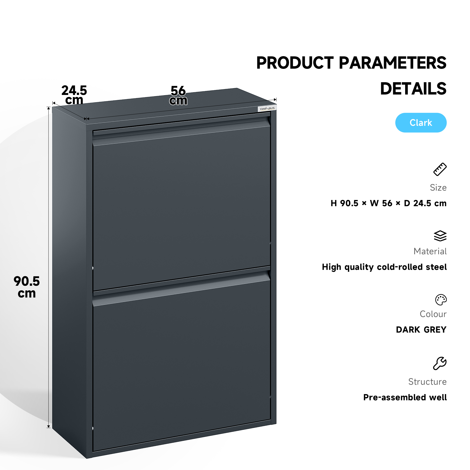 • Levering: Clark wordt gemonteerd geleverd en is dus direct klaar voor gebruik als nieuwe dagelijkse opberghulp.