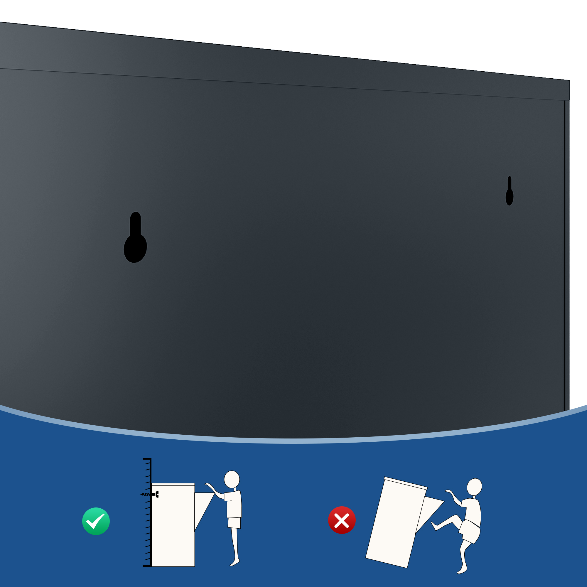 Duvara montaj: Clark, geniş hacmine rağmen duvara kolayca monte edilebildiği için küçük ve dar alanlar için idealdir. Duvar montajı için gereken dübel ve vidalar ürüne dahildir.