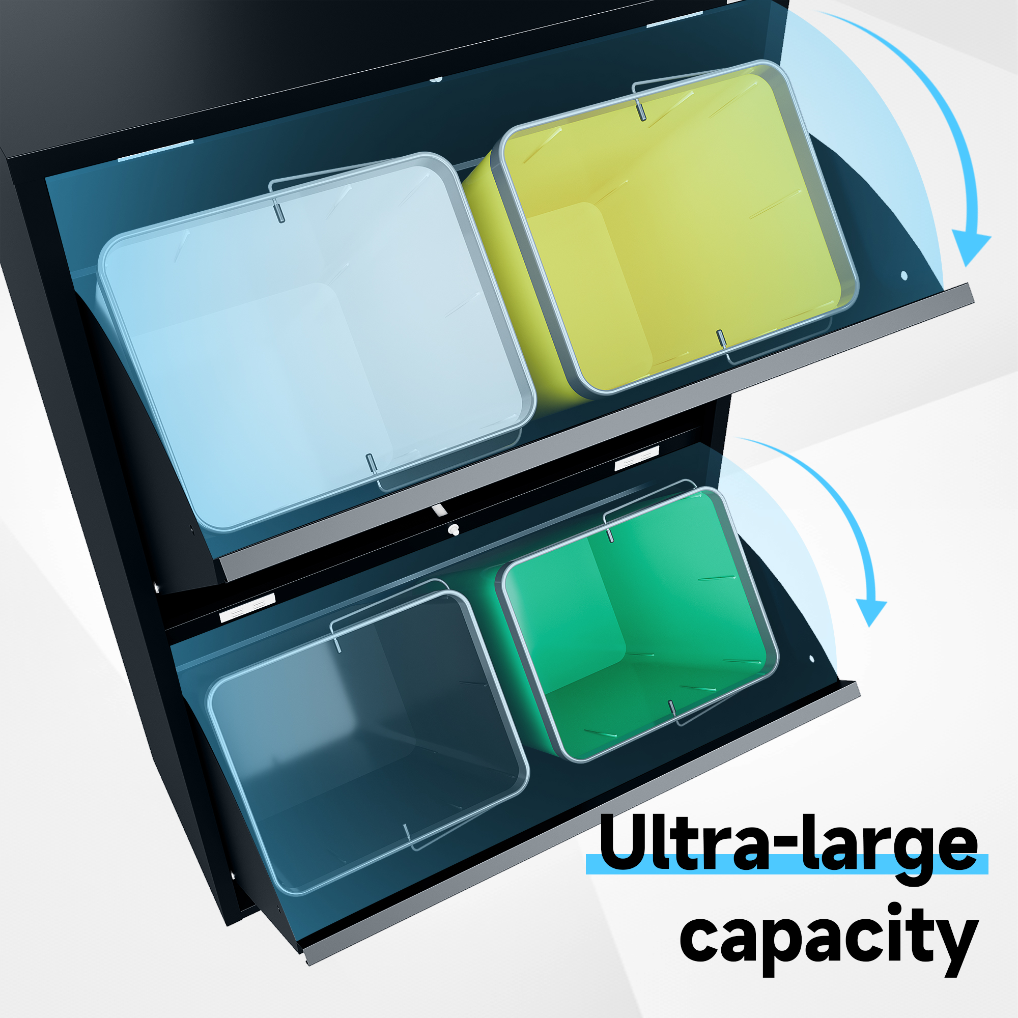 İç kova: Teslimata, boyutuna bağlı olarak 2-4 adet sağlam plastik kova dahildir. İç kovalar, kolay ve hijyenik kullanım sağlayan krom kaplamalı taşıma sapına sahiptir.