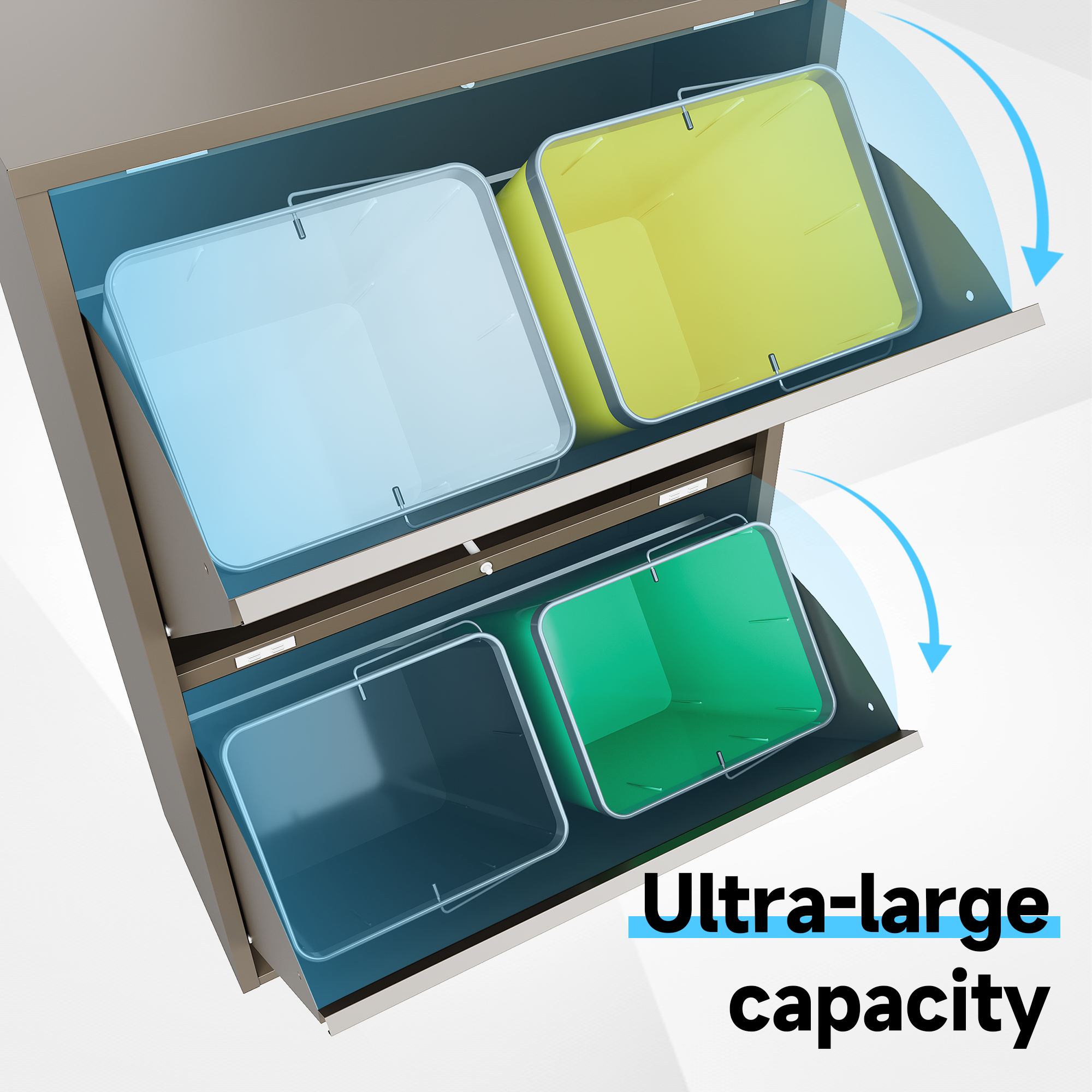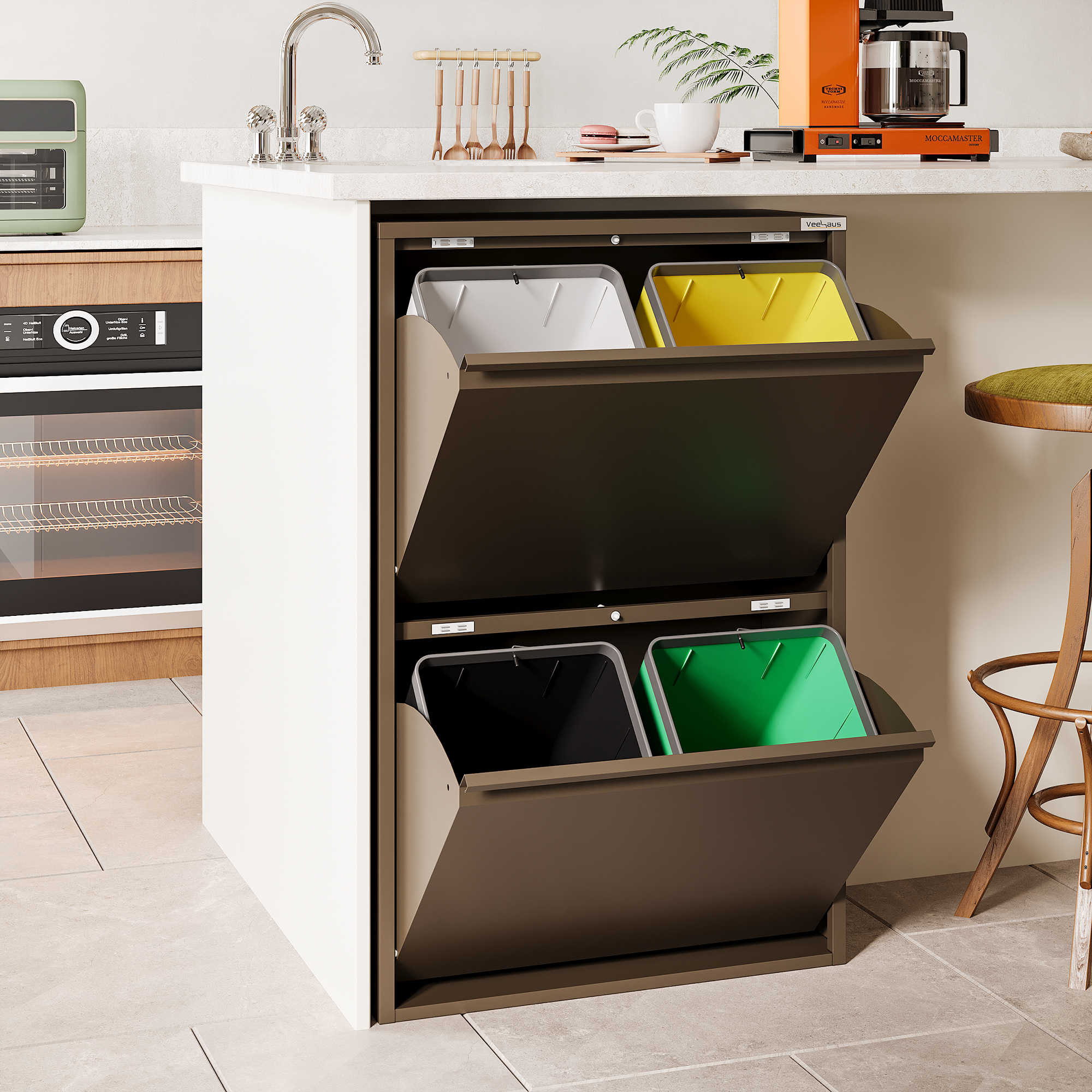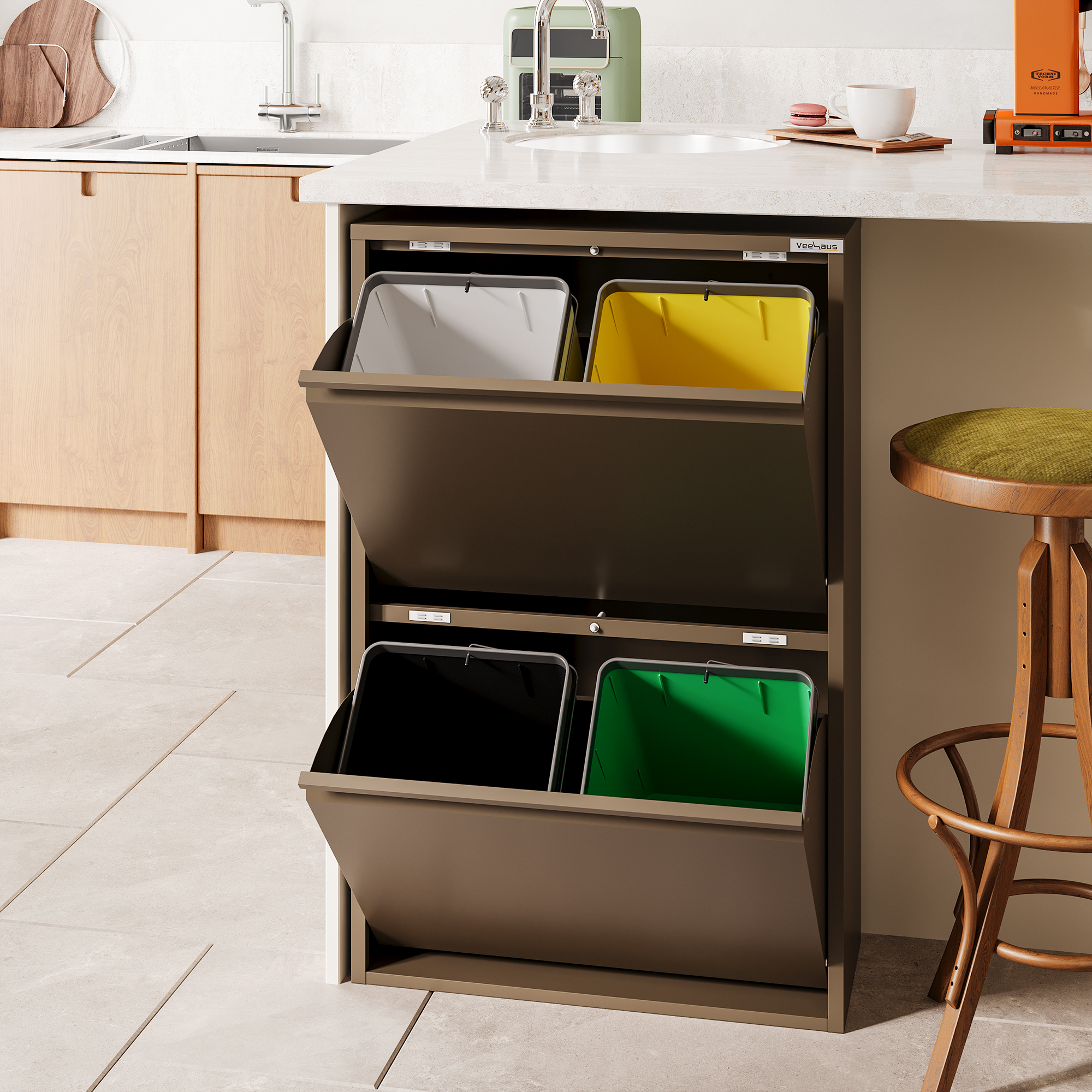 Home Prullenbak Veehaus® Clark – Prullenbak 4 vakken – Afvalemmer 60 Liter (4x 15L) – Hygienisch Recyclen – Metaal – Beige