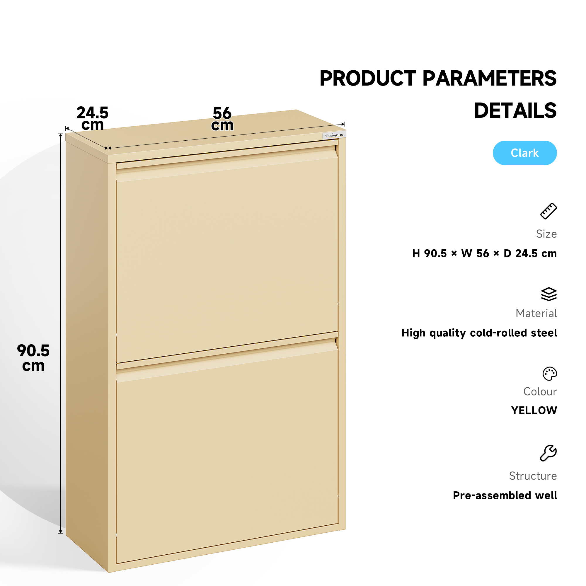 • Levering: Clark wordt gemonteerd geleverd en is dus direct klaar voor gebruik als nieuwe dagelijkse opberghulp.