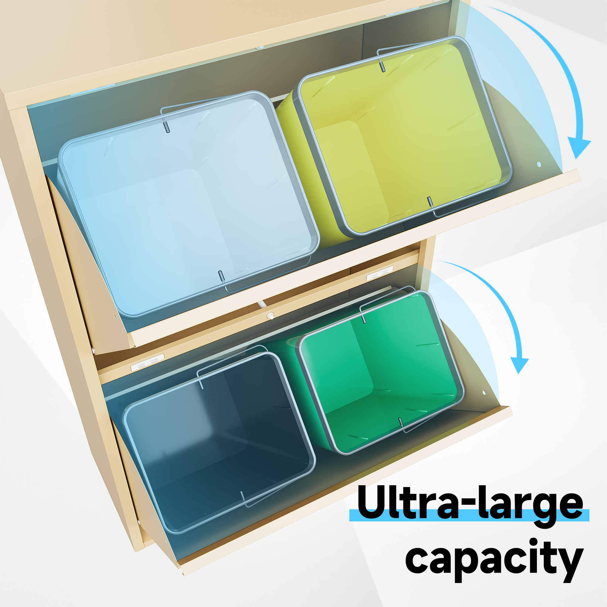 • Binnenemmer: bij de levering inbegrepen zijn, afhankelijk van de maatvarianten, 2-4 robuuste emmers van kunststof. De binnenemmers beschikken over een verchroomde draagbeugel, die een eenvoudige en hygiënische bediening garandeert.