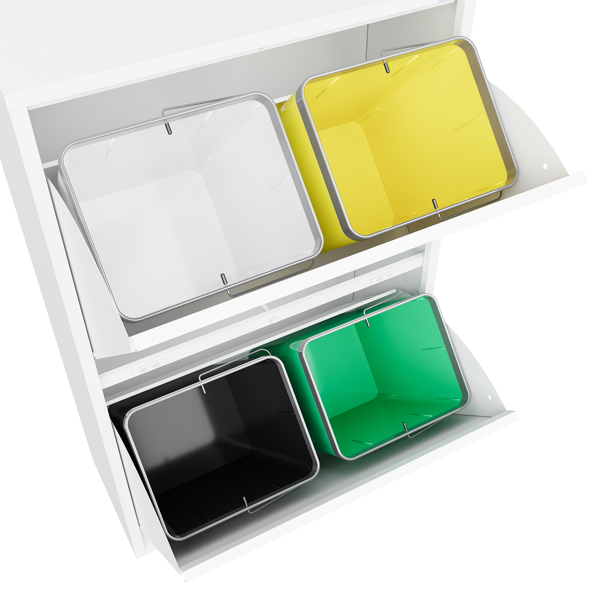 • Veelzijdig: de veelzijdige multifunctionele kast Clark van metaal is een ideale afvalscheider. Maar niet alleen als afvalscheidingssysteem is hij de perfecte aanvulling voor elk huishouden, maar ook als opbergsysteem slaat hij een goed figuur. Dankzij de hoogwaardige afwerking en look is hij geschikt voor bijna alle ruimtes.
