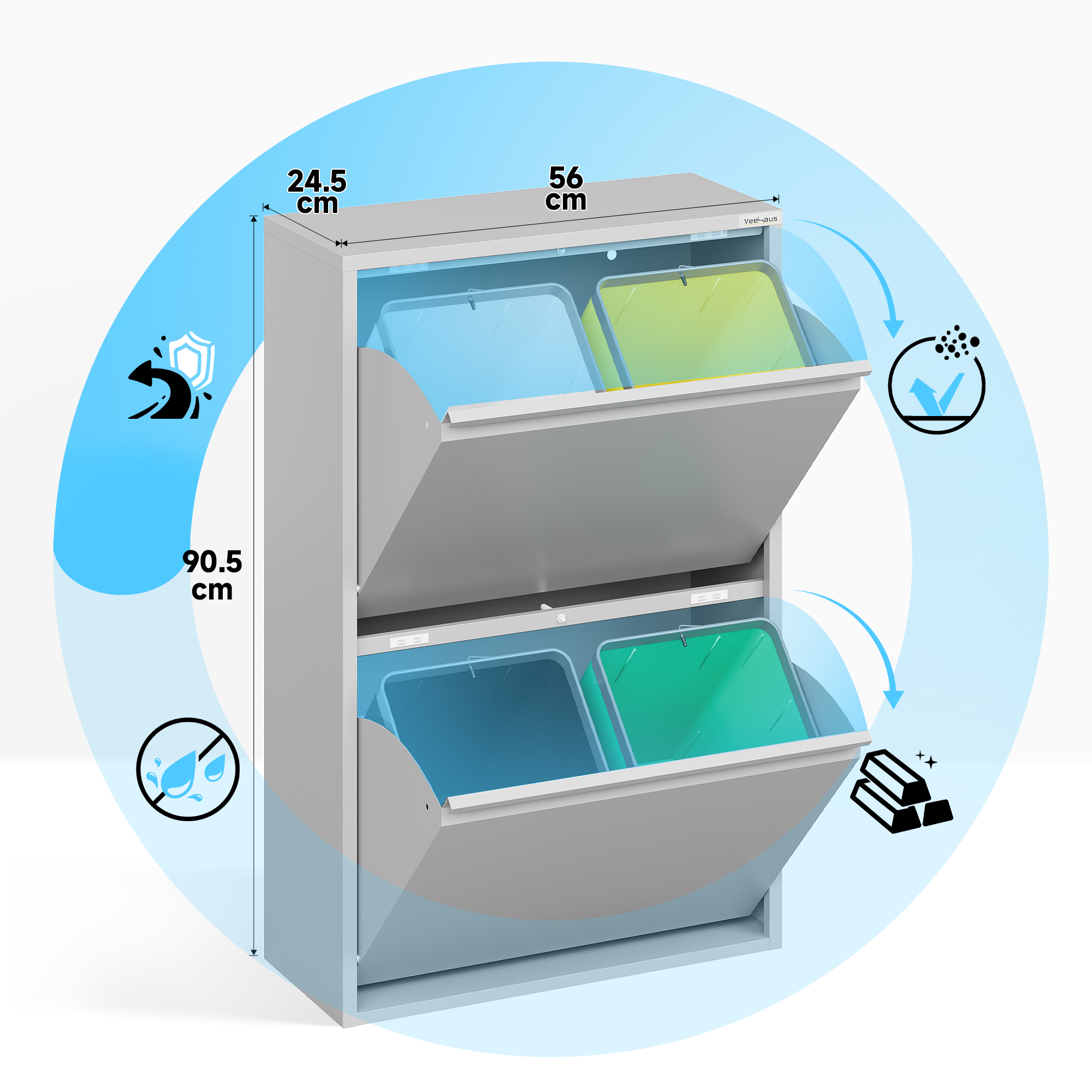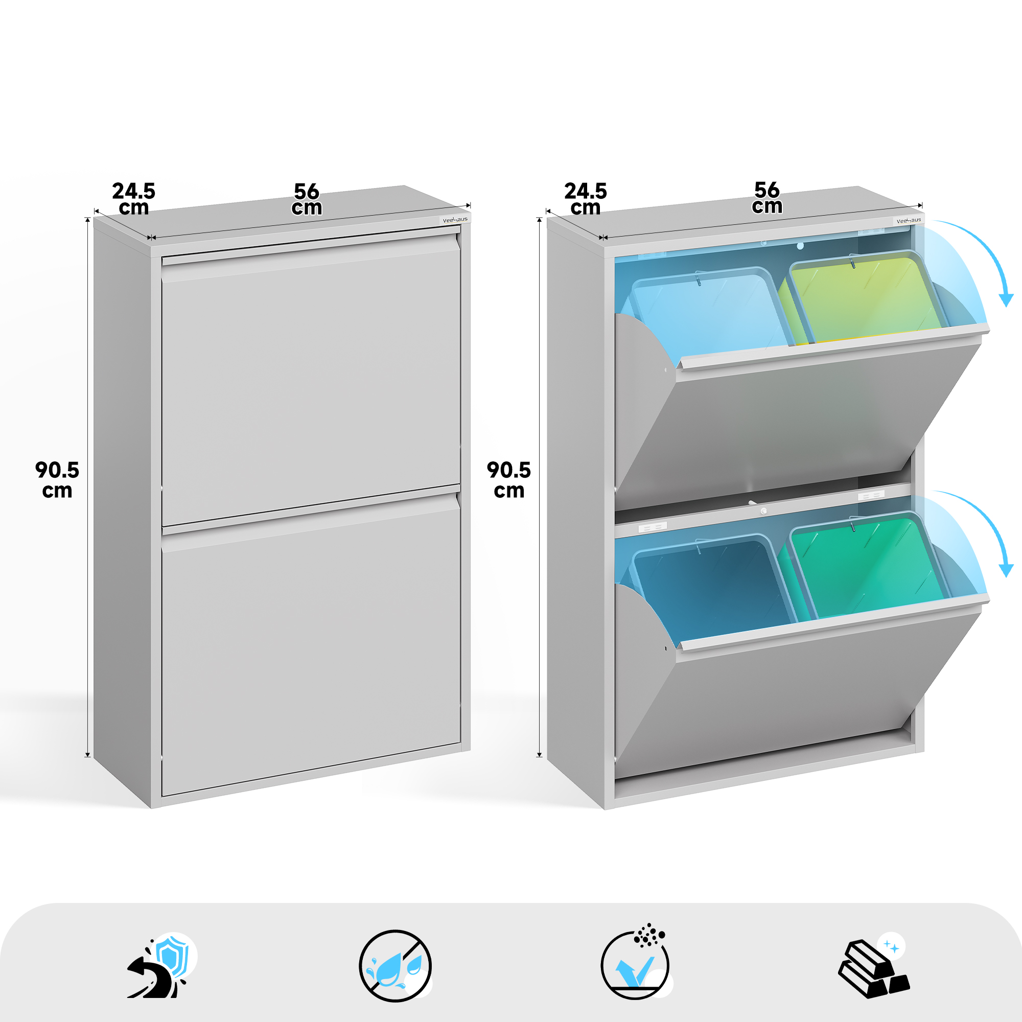 • Veelzijdig: de veelzijdige multifunctionele kast Refina van metaal is een ideale afvalscheider. Maar niet alleen als afvalscheidingssysteem is hij de perfecte aanvulling voor elk huishouden, maar ook als opbergsysteem slaat hij een goed figuur. Dankzij de hoogwaardige afwerking en look is hij geschikt voor bijna alle ruimtes.