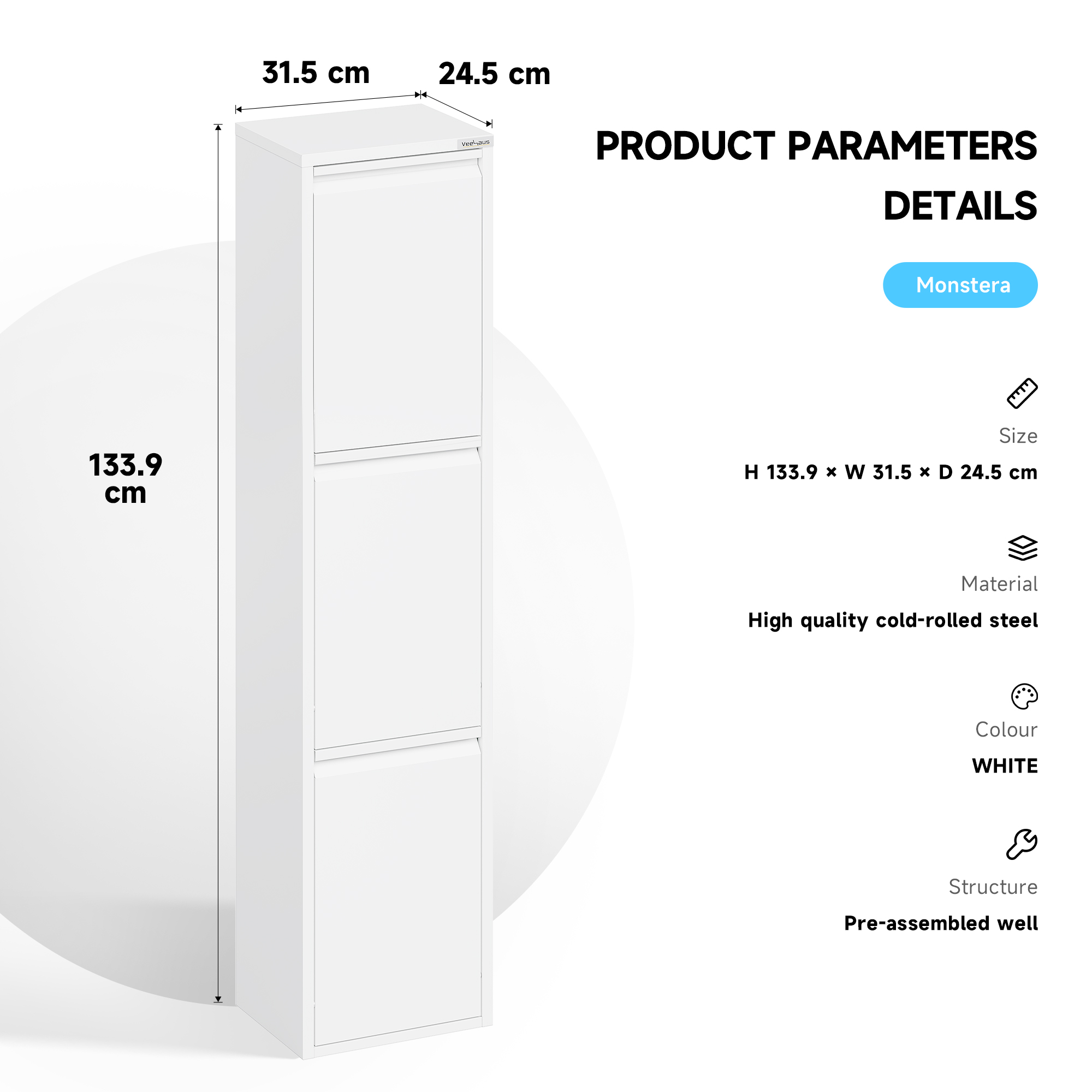 • Veelzijdig: de veelzijdige multifunctionele kast Monstera van metaal is een ideale afvalscheider. Maar niet alleen als afvalscheidingssysteem is hij de perfecte aanvulling voor elk huishouden, maar ook als opbergsysteem slaat hij een goed figuur. Dankzij de hoogwaardige afwerking en look is hij geschikt voor bijna alle ruimtes.