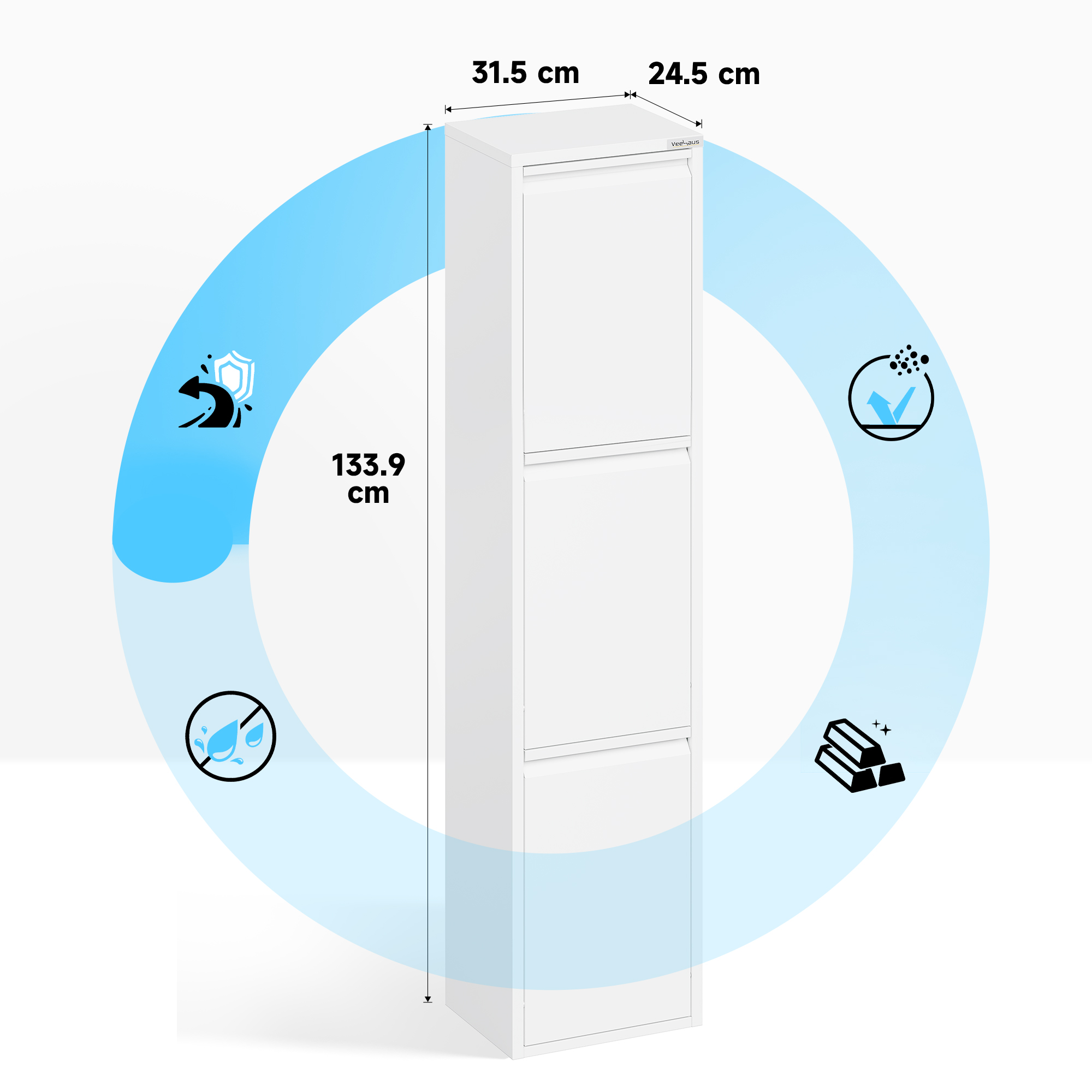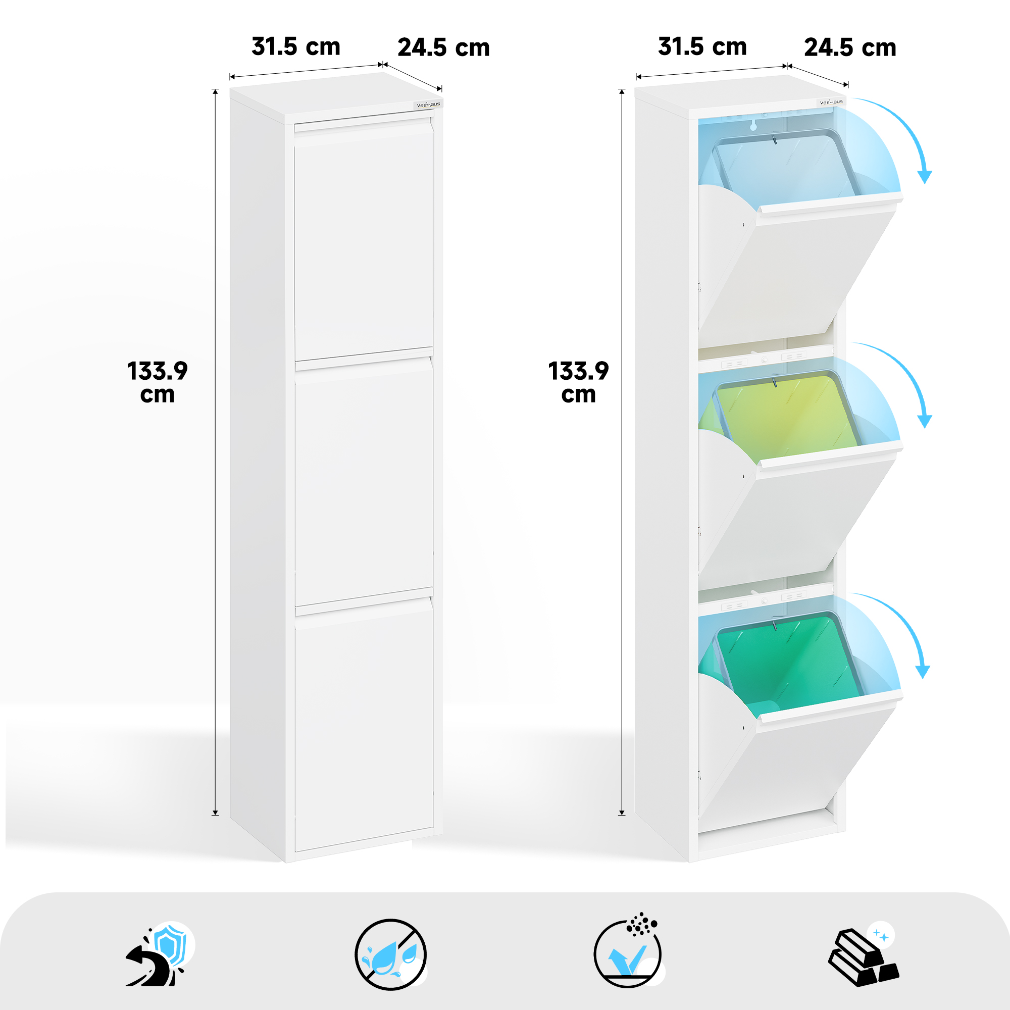 • Veelzijdig: de veelzijdige multifunctionele kast Refina van metaal is een ideale afvalscheider. Maar niet alleen als afvalscheidingssysteem is hij de perfecte aanvulling voor elk huishouden, maar ook als opbergsysteem slaat hij een goed figuur. Dankzij de hoogwaardige afwerking en look is hij geschikt voor bijna alle ruimtes.