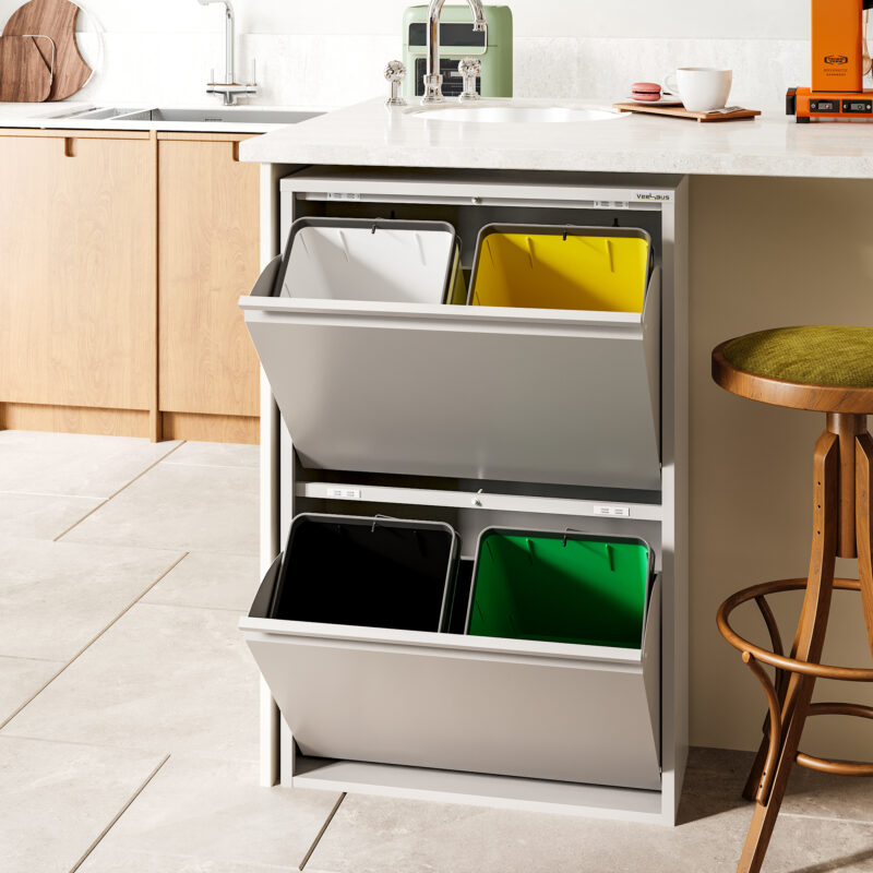 Veehaus® Clark - Prullenbak 4 vakken - Afvalemmer 60 Liter (4x 15L) - Hygienisch Recyclen - Metaal - Ivory€ 189,90 -